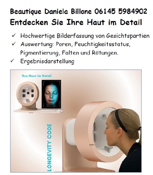 Sie zeigt ob bestimmte Bereiche Ihrer Haut trocken, normal oder ölig sind, wo die Haut an Festigkeit und Spannkraft verliert und zeigt sogar Fältchen bevor sie mit dem bloßen Auge sichtbar werden.